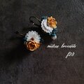 アンティークな色合いを意識して染めた布で作るつまみ細工のアクセサリーです。