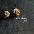 アンティークな色合いを意識して染めた布で作るつまみ細工のアクセサリーです。