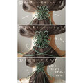 まず最初にゴム部分で髪をまとめ、垂れている紐部分をそのゴム部分の上から巻きつけて使用することにより「和」な雰囲気を楽しもうと言う趣向で作りました