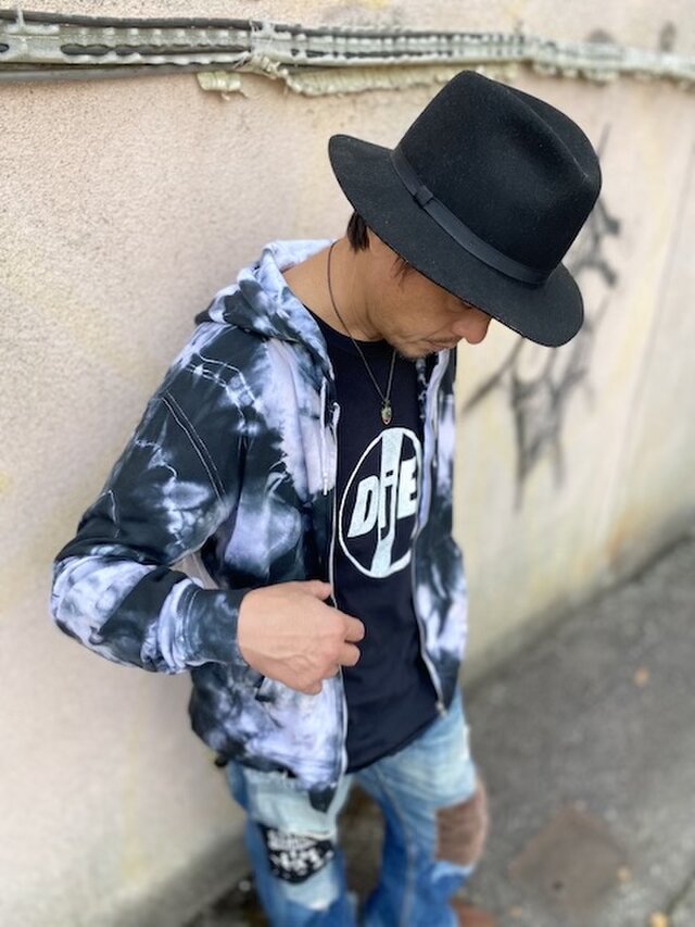 花鳥風月 最新作!!BLACK ARC!!前開きパーカー☆ タイダイブラック Lサイズ HD12-55