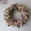 小さなブーケにしたものをリースベースに巻きつけて制作しています。
