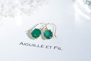 パッと目を引く鮮やかなグリーンが魅力的なグリーンオニキスをピアスに仕立てました。