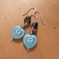 102820 チェコ チェコガラスビーズ ハート アンティーク ブルー ターコイズ 淡水パール パール スモーキークォーツ 天然石 silver925 揺れる プレゼント パワーストーン ピアス イヤリング 冬 青 通勤 通学 お呼ばれ ノンホール チタン 花 フラワー