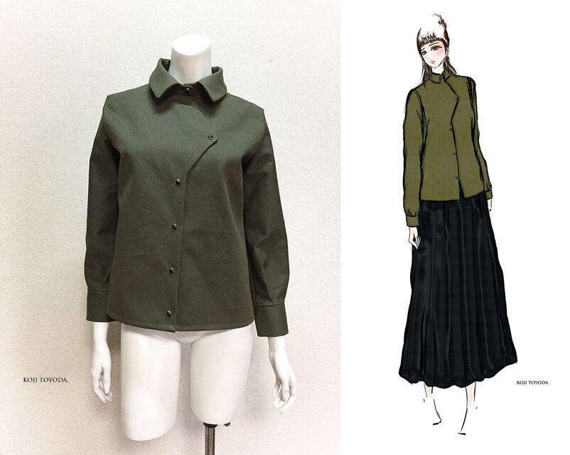 【1点もの・デザイン画付き】岡山産デニム(カーキ)アシメトリーブラウス(KOJI TOYODA)