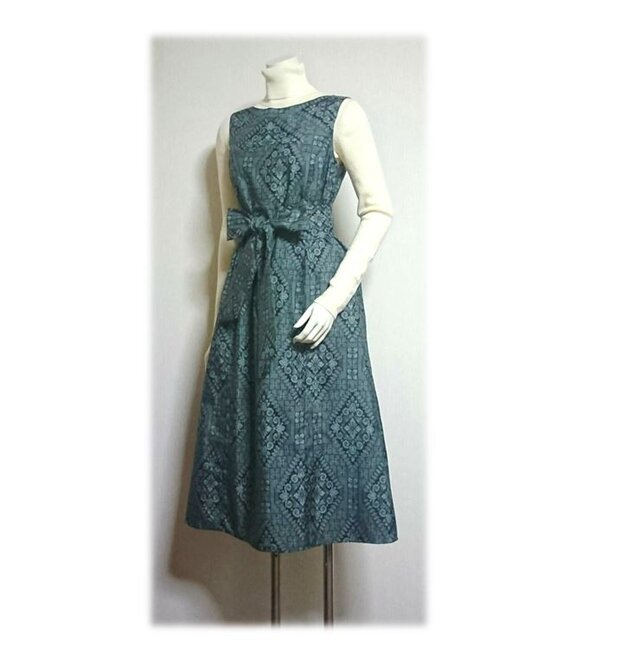 大島紬着物からリメイクししたワンピース、お揃いのマスクがセットされています。