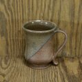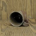 陶器製のマグカップです.コンパクトサイズの「トランジスタ」タイプです.赤土で作ったものを不完全燃焼で焼成し,むき出し部分は鉄色,釉薬部分は灰色っぽく変化しています.