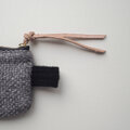 ざっくりとした織り、シルバーグレー色のウール生地で小さめのポーチを制作しました