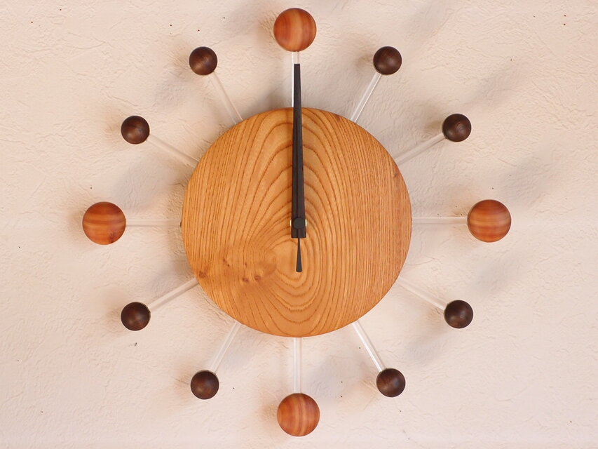 時刻マークには、はくじとブラックウォールナットをアクリルの丸棒でつなげてみました。