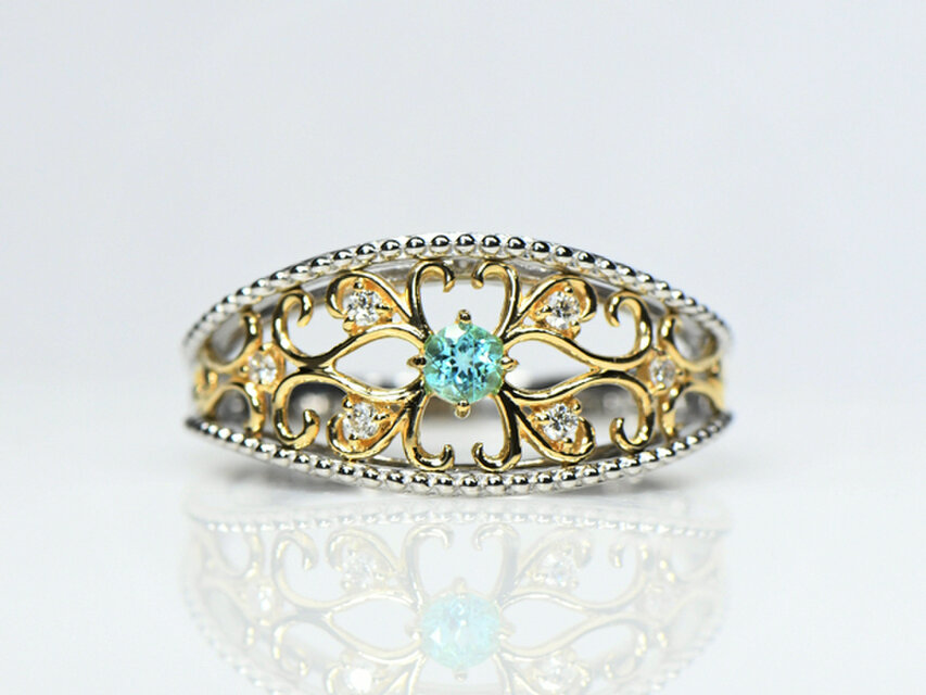 プラチナ900 K18 パライバトルマリン×ダイヤ リング Pt900 K18イエローゴールド アラベスク BU037CI