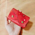 高級ヌメ革 手染めのルーズ財布 花柄 赤