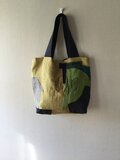 リネンのコラージュと刺し子のバッグ『月明かりの夜、家路を急ぐ』