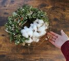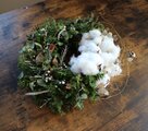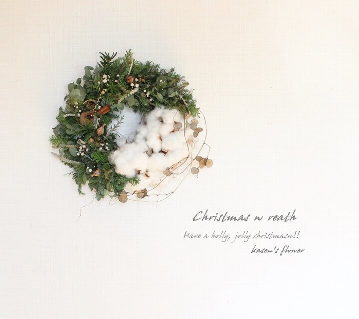 ごろっと詰めた天然の綿花が楽しいクリスマスリースを作りました。