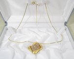 ゴールド色の輝きが綺麗なパイライトを留めたSV925製のトップと、同じくSV925製のスライド式チェーンのネックレスです。