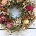 ヘリクリサム、千日紅、ケイトウ、ライスフラワー、ブルーファンタジー、ユーカリ (ドライフラワー)