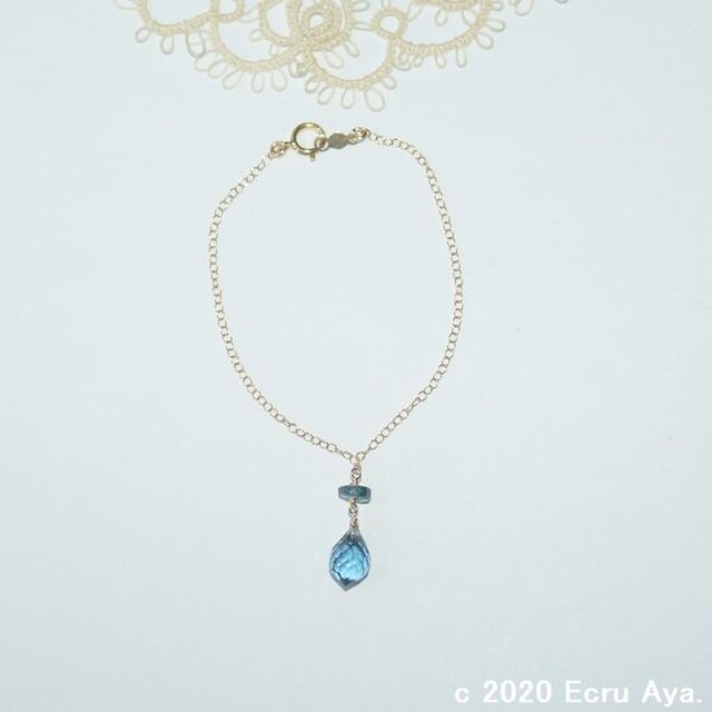 16cmのブレスレットをお作りし、中央に宝石質ロンドンブルートパーズAAAを下げました。