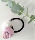可憐な花のモチーフにパールとホワイトミンクを合わせた華やかなヘアゴムです。