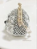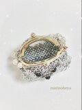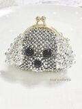 ボタンカットガラスビーズやパール、チェコビーズなどを使って作ったがま口わんちゃんバッグです。
