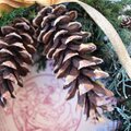 細長くスマートな形をした、ストローブ松の松ぼっくりを使ったリースです。