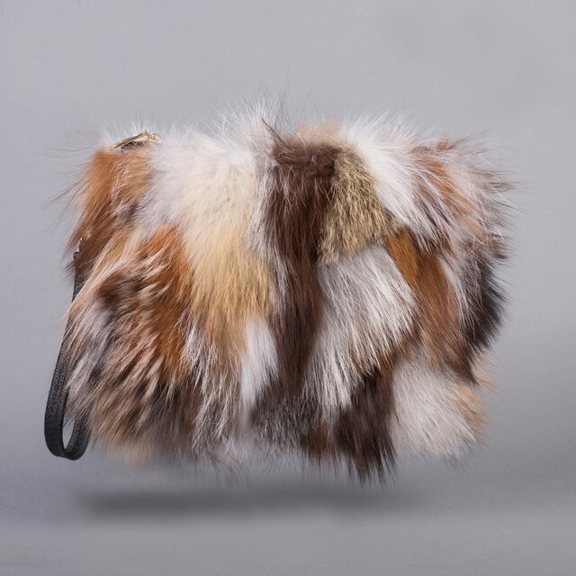¶ new antique fur ¶ ブラウン系フォックスファークラッチバッグ