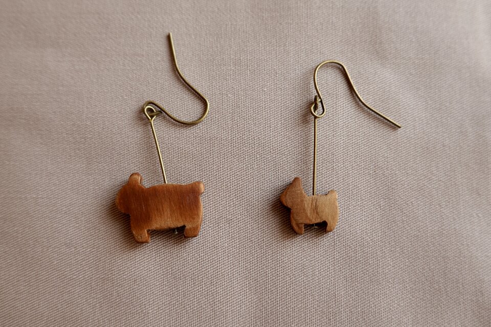 耳元でゆらゆら揺れる、親子のくまのピアスです。