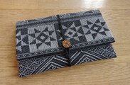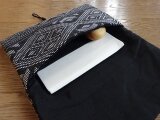 ボタン留めです。帯は木綿。内袋は黒の薄手の絹紬で2か所に分かれています。