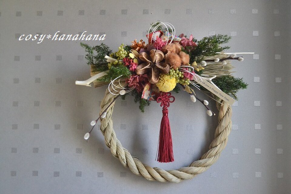 プリザ・ドライフラワーを使用したしめ縄飾りです。