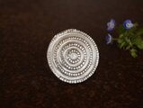 とてもステキです。陶磁器での作成と伺っております。とても軽いです。 デザインのプチプチがハッキリしていているので浮き上がって見えてとても良いです。早速付けて出勤したところ、ステキね!と言われましたよ
