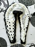 60.なわ編みの「まる」で遊ぶショール/ブラックドット【エコファー裏地つき】