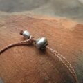 二本の紐をまとめるのは、丸みのあるチンシルバー。
