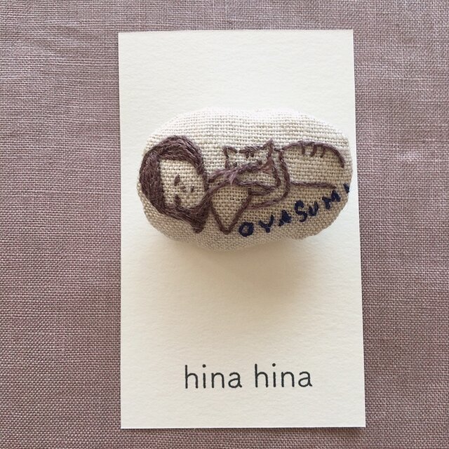 ニャンコとの愛おしい時間を 刺繍しました。一緒におさんぽに行ける様に ブローチに仕立てました。