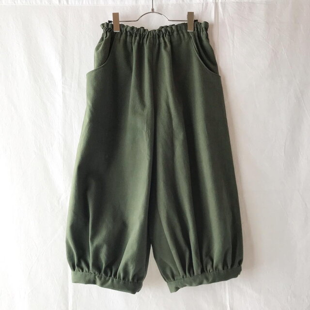 ゆったりかわいい三毛猫屋のバルーンパンツ(起毛かつらぎ:モスグリーン)