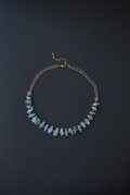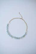 少しずつ色の違う柔らかな雰囲気のブルーメノウと、清々しい水色のガラスビーズのコントラスト。とても繊細で美しいです。 ポイントに配置された真鍮ビーズはほんとうにツボです! とても気に入りました。