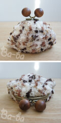 ほんわかブラウン系のモールヤーンをふんわりと編み上げ、ウッドつまみの口金と組み合わせました。