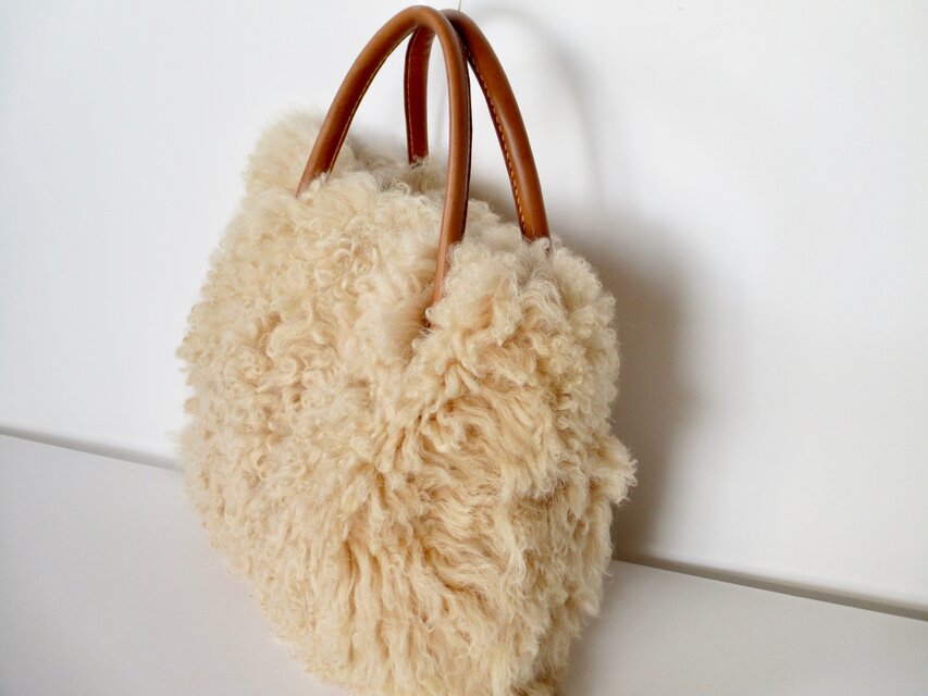 スペイン製クルクルムートンの大きめトート (アイボリー)