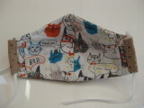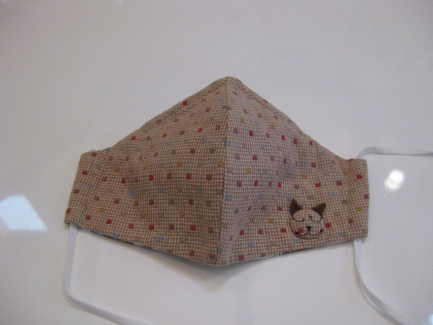 柄布マスク(ノーズワイヤー入り、猫付き)