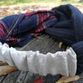 ウールのタータンチェック生地、ストライプの少し厚地の生地をミックスし、