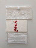 もしアイロンをかける時はタオルを敷いて刺繍の表を下に押すように(表にアイロンをあてると刺繍がつぶれます)半乾き状態の方が綺麗になります。