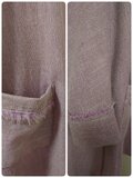 写真ではピンクのように見えますが、ピンクがかった紫と白の糸のミックス織りでひかりの具合でしろっぼくみえたりもします。