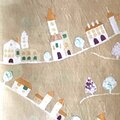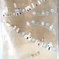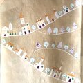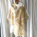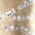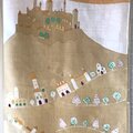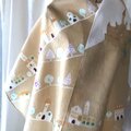 ウール100%生地に、ヨーロッパの街やお城をデザインして、ロウケツ染で染めました。大判ですので、肩掛けとしてもマフラーとしても、オシャレに着こなす事が出来ます。