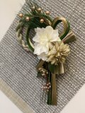 グリーンとシルバーの水引に合せて、ホワイトとグリーンの花材で合わせました。
