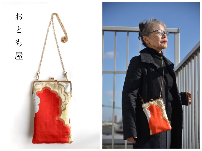 おとも屋 絹帯ポシェット 御朱印帳ポーチ パーティーバッグ 一点もの 金銀 ハート 御朱印帳バッグ 着物 結婚式 成人式