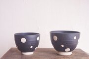 黒い器の中に白く抜いたドットを施した「白玉ボウル」
