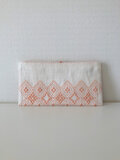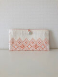 ポーチが汚れたらやさしく洗い、タオルに挟んで水分を取り、形を整え、ピンチのあとに気をつけて乾かす。(このままでシワが気にならなければ大丈夫と思います)