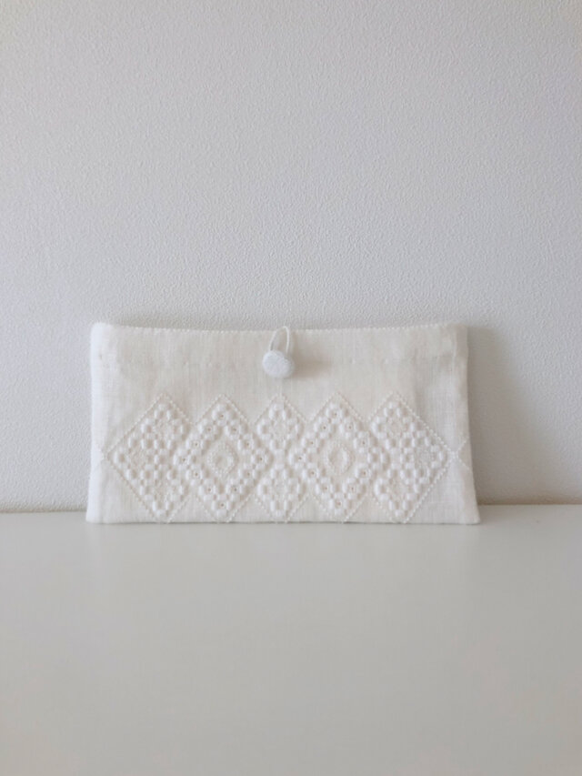 ポーチが汚れたらやさしく洗い、タオルに挟んで水分を取り、形を整え、ピンチのあとに気をつけて乾かす。(このままでシワが気にならなければ大丈夫と思います)