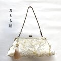 おとも屋 絹帯バッグ クラッチ タッセルチェーン付き 2way パーティーバッグ シャンパンゴールド 梅 和 モダン 和装着物