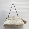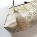 シャンパンゴールド地に金糸銀糸の刺繍が施されたとても上品な色柄のがま口クラッチバッグです。