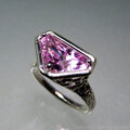 遊び心溢れる三角形のカットが施された、クンツァイトを使用したリング。