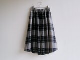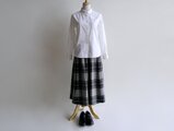 播州織コットン*たっぷりギャザーのキュロットスカート(黒系チェック柄・ツイル生地)送料無料