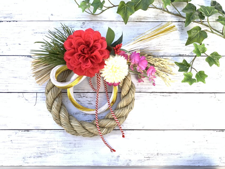 【2021迎春!】ダリアとマムのお正月飾り◇ ♯お正月飾り ♯しめ縄 ♯しめ縄飾り