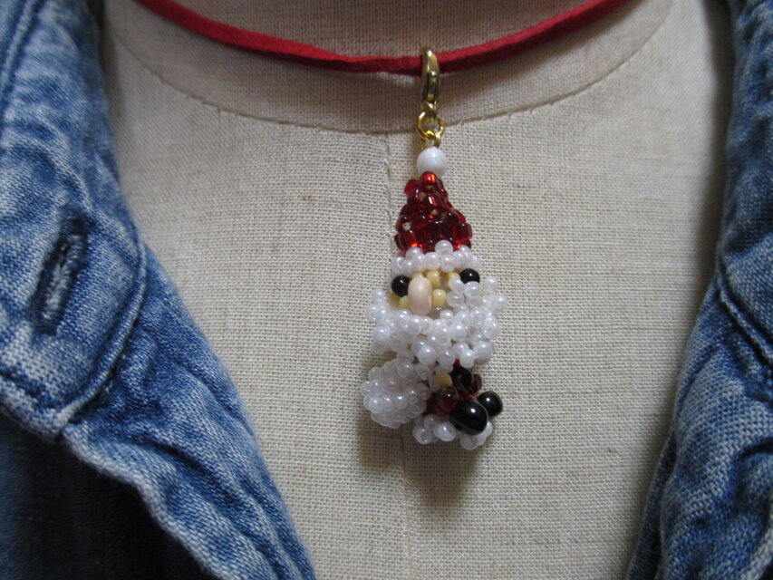 あまりにかわいいビーズの作品でしたので チョーカーにしてみました。赤い紐をお付けします。
